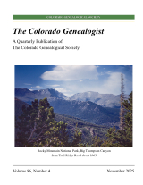 The Colorado Genealogist is a quarterly journal published by The Colorado Genealogical Society as a member benefit.
